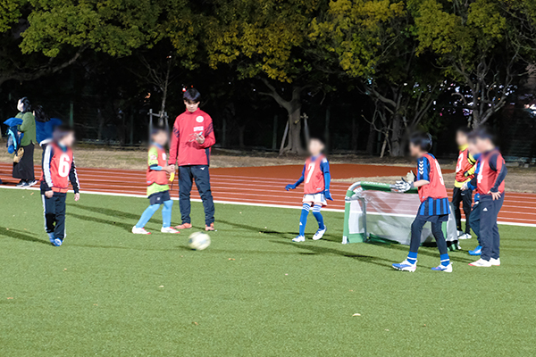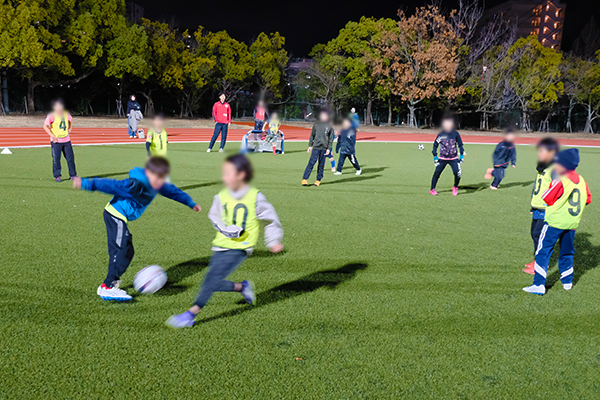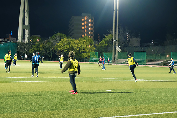 また中学生以上を対象とした「大人のためのサッカーフェスタ」では、照明完備の人工芝ピッチで試合を行いました。フェアで温かい雰囲気の中、白熱したプレーが随所に見られました。