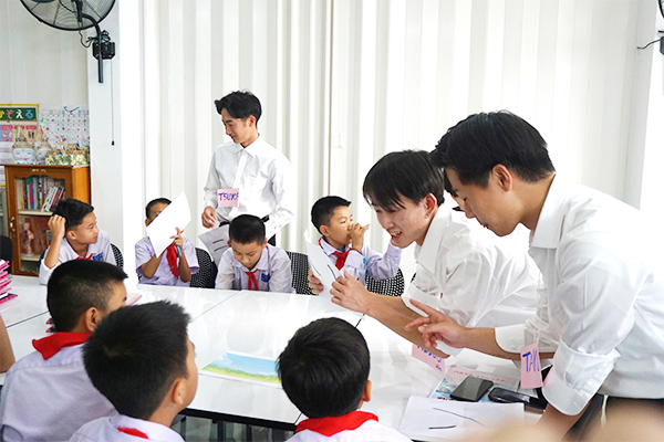 ・センビライ小・中学校を訪問した際には、200名を超える生徒から熱烈な歓迎を受けて感動しました。同校での日本語の授業やプレゼン発表では、生徒たちが興味をもてるよう工夫を凝らして実施しました。その準備のために、研修中は毎晩夜間ミーティングがあり大変でしたが、仲間とより良い方向性を目指して意見交換したことは今となっては良い思い出になりました。