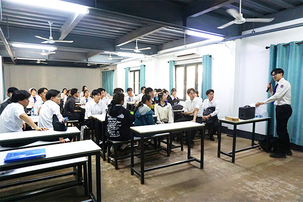 日ラオス友好促進活動は、ラオス国立大学を訪問し、文学部日本語学科の学生24名とも交流を行いました。国立大学の学生6名が3月に出場予定のスピーチコンテストに向けた予行演習を行い、内山ゼミの学生がコメントを寄せました。
