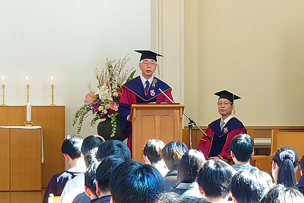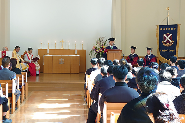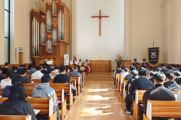 4月3日(金)、桃山学院大学和泉キャンパスにおいて「工学部開設記念礼拝」が厳かに執り行われました 。本学初となる理系学部の誕生により、桃山学院大学は8学部9学科を擁する総合大学へと進化を遂げ、歴史的な一歩を踏み出しました。
