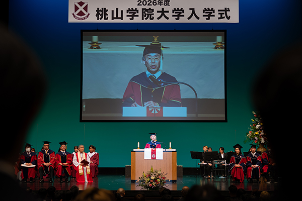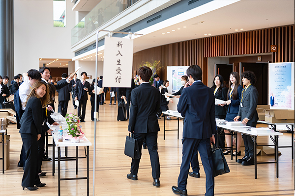 エンディングには本学卒業生の映像クリエイターが制作したムービーが上映され、キャンパスの日常風景や先輩からの歓迎メッセージが新入生へと届けられました。教職員をはじめ、同窓会や教育後援会など、大学全体で新入生の新たな一歩を祝福する温かい式典となりました。