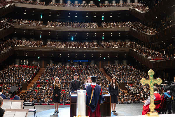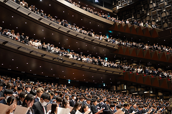 新入生のご家族も出席し、学部生2,160名、大学院生21名が午前と午後の部に分かれて新生活のスタートを祝いました。
