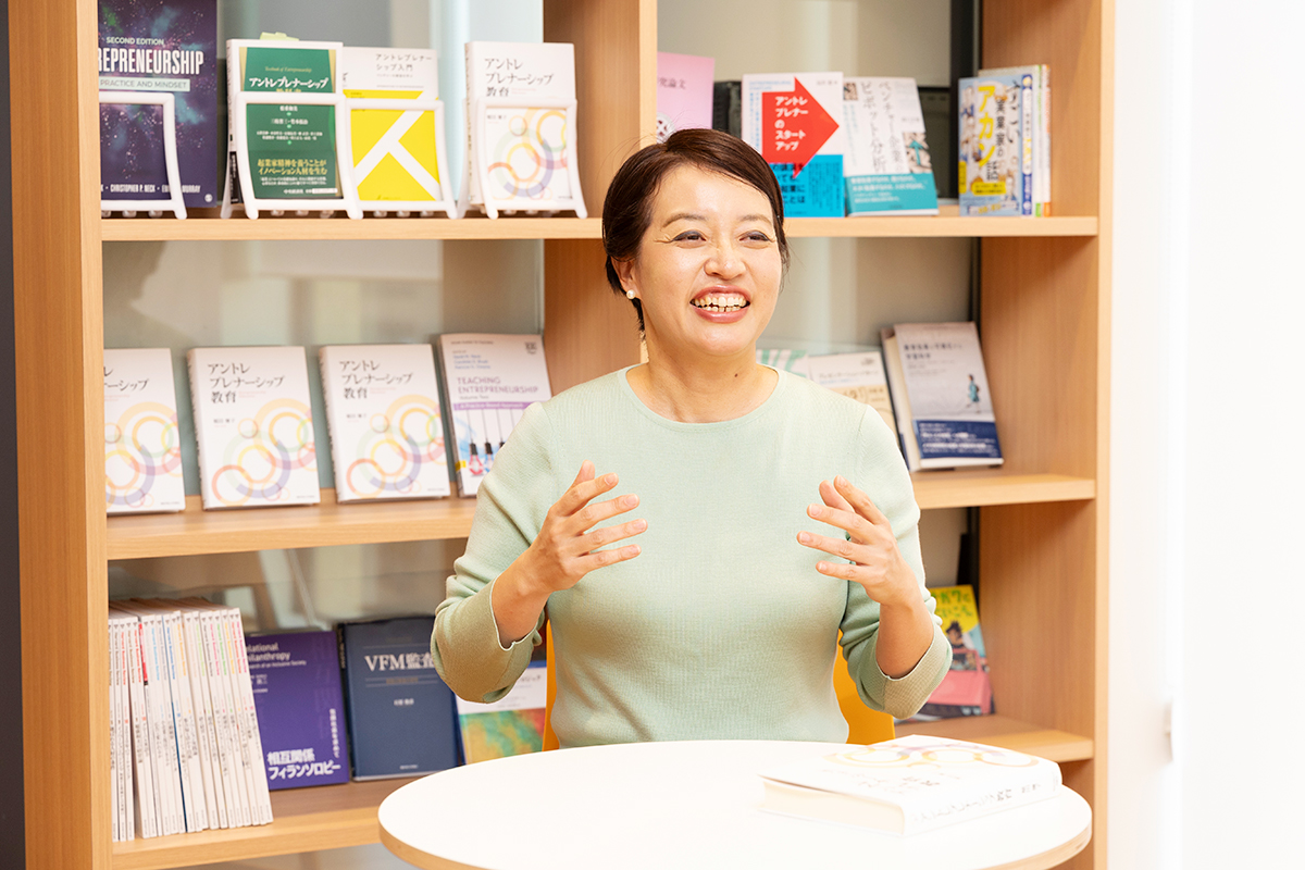今、進めている研究の一つは、実践から学び始める本学ビジネスデザイン学部の教育効果を検証することです。学生が何を学び、どのような成果が出たのかなどのインタビュー調査をしています。また、アントレプレナーシップ教育の海外比較、社会課題に重点を置いたソーシャル・アントレプレナーシップや、STEAM(スティーム)教育(科学、技術、工学、芸術、数学の複数の分野を統合的に学ぶ教育)の研究をすることを考えています。今後、イギリス、カナダ、韓国にいらっしゃる先生と国際共同研究をする予定です。