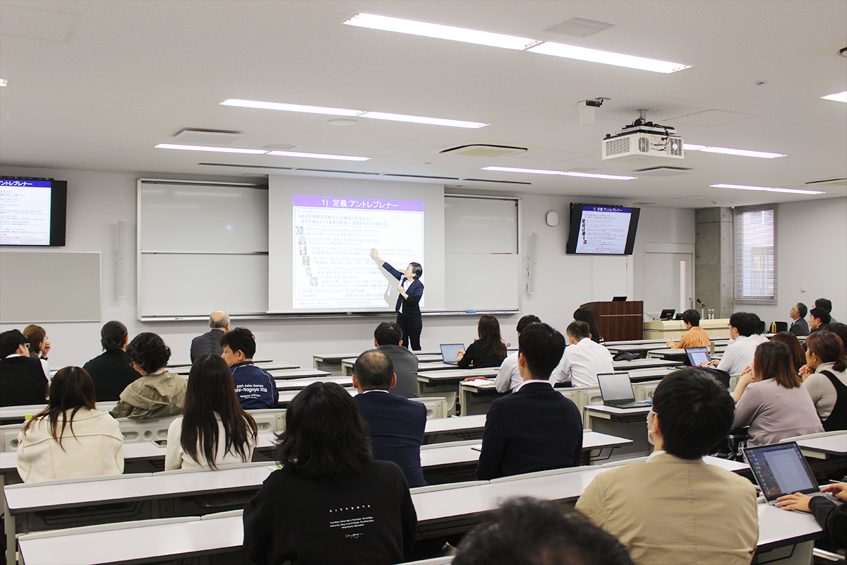 いろいろな反響があったのですが、愛知県立大学の教養教育センター長から講演依頼があり、2025年10月に「未来のアントレプレナーシップ教育に向けて」というテーマで教職員をはじめ学生に講演させていただきました。アントレプレナーシップ教育の歴史や定義、アントレプレナーシップ教育がもたらす価値、効果検証などを対話形式でお話しました。私が一方的に話すのではなく、質問を投げ掛けて隣の席の人と話し合ってもらったりしたのです。